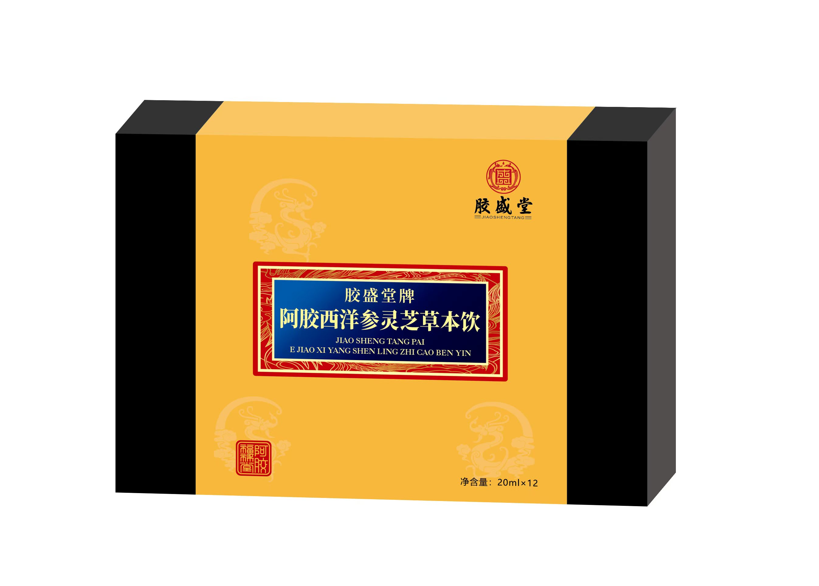 阿胶西洋参灵芝草本饮 黑金纸盒(规格:20ml*12瓶)